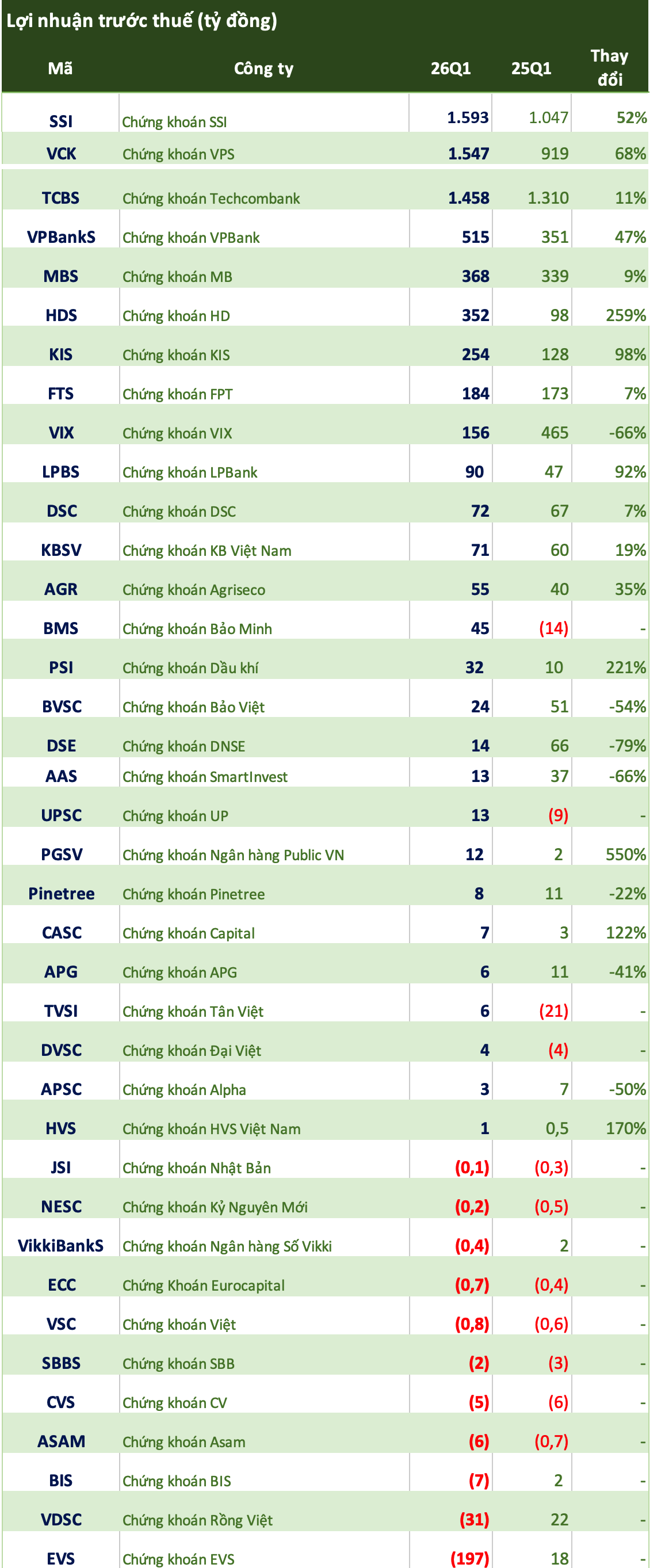 Cập nhật số liệu CTCK công bố báo cáo tài chính quý 1/2026